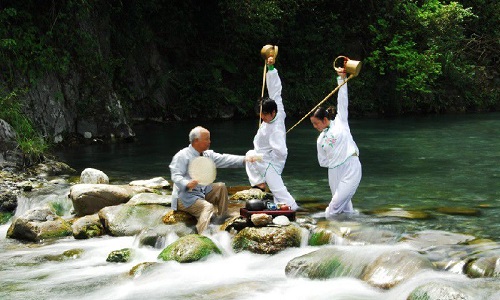 還有一些高雅的茶藝表演,是蒙頂山“禪茶”中所獨創(chuàng)的十八道獻茶技藝。相傳“龍行十八式”茶技是北宋高僧禪惠大師在蒙頂山結(jié)廬清修時所創(chuàng)。過去作為僧人修行的一門功課,“龍行十八式”茶藝只在蒙頂山僧人中流傳,直到清代才逐漸傳入民間。創(chuàng)下融茶道、武術(shù)、舞蹈、禪學(xué)、易理為一體的茶技-蒙頂派“龍行十八式”。佛教文化和茶文化的水乳交融,更奠定了蒙山作為世界茶文化圣山的至尊地位。