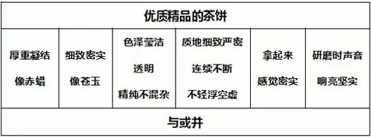 有的茶餅表面光彩而內(nèi)在灰暗,也有的茶餅內(nèi)里實(shí)在潔凈而外表質(zhì)樸。茶餅外表如同人的容貌各不相同,很難一概而論。總而言之,色澤瑩潔透明并且顏色不混雜,質(zhì)地細(xì)致嚴(yán)密而不輕浮,拿起來感覺密實(shí),碾碎時(shí)聲音清亮,這些都可以表明是精品好茶。茶葉的鑒別,有的可以通過具體的言語和意旨來表達(dá),有的只能心中領(lǐng)會(huì)了。