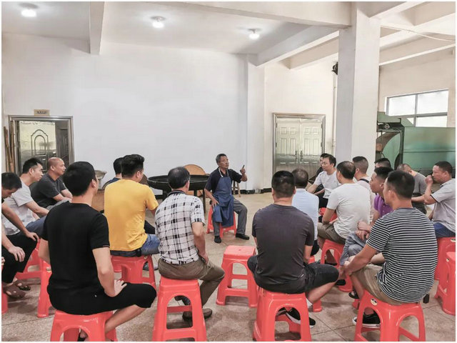 在為期三天的培訓(xùn)中,梁駿德師傅系統(tǒng)講述了正山小種悠久的歷史、紅茶制作關(guān)鍵點和技巧、正山小種與其他工夫紅茶的差異等內(nèi)容,演示了毛茶中不同大小輕重茶的篩分、合理選篩、等級劃分、簸茶片末等技術(shù)操作,現(xiàn)場指導(dǎo)審評武夷紅茶系列全套標(biāo)準(zhǔn)樣。參訓(xùn)學(xué)員一邊觀摩學(xué)習(xí),一邊認(rèn)真記錄,還不斷提問,梁駿德師傅傾情指導(dǎo)、耐心解答。看著學(xué)員們孜孜以求的學(xué)習(xí)態(tài)度,梁駿德師傅倍感欣慰地說道:“正山小種已經(jīng)走過400多年的風(fēng)雨,希望正山小種手工精制加工工藝能在我們這一代、下一代更久遠(yuǎn)傳承下去,而且一定要傳承下去。”